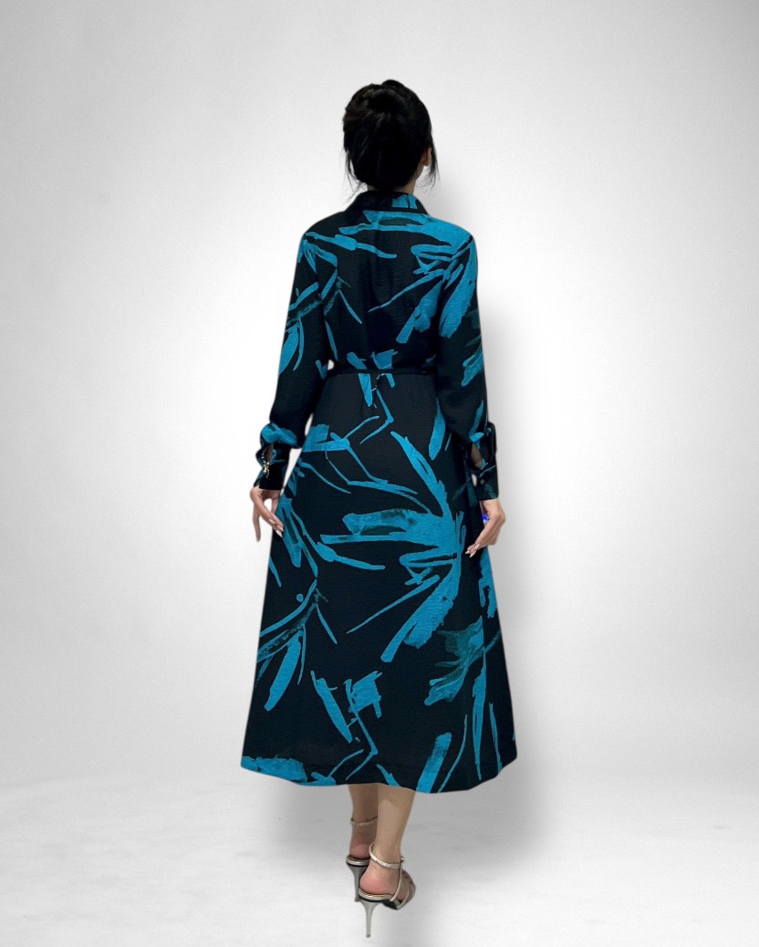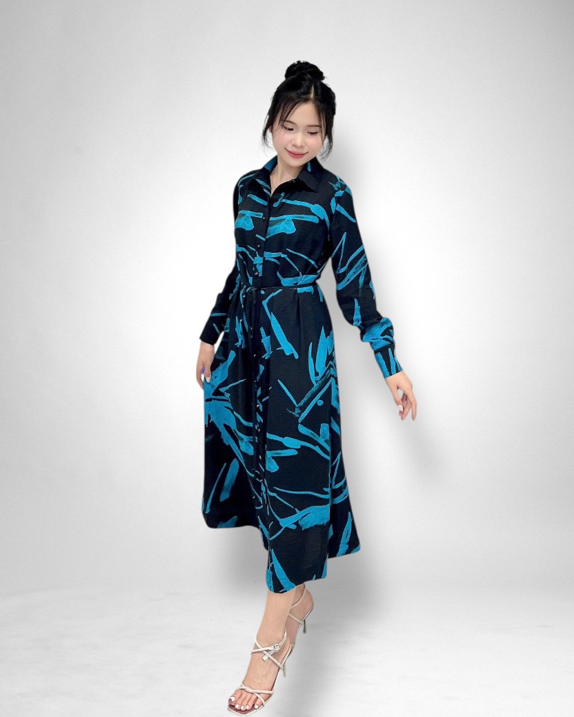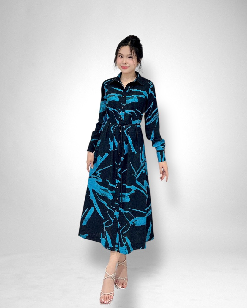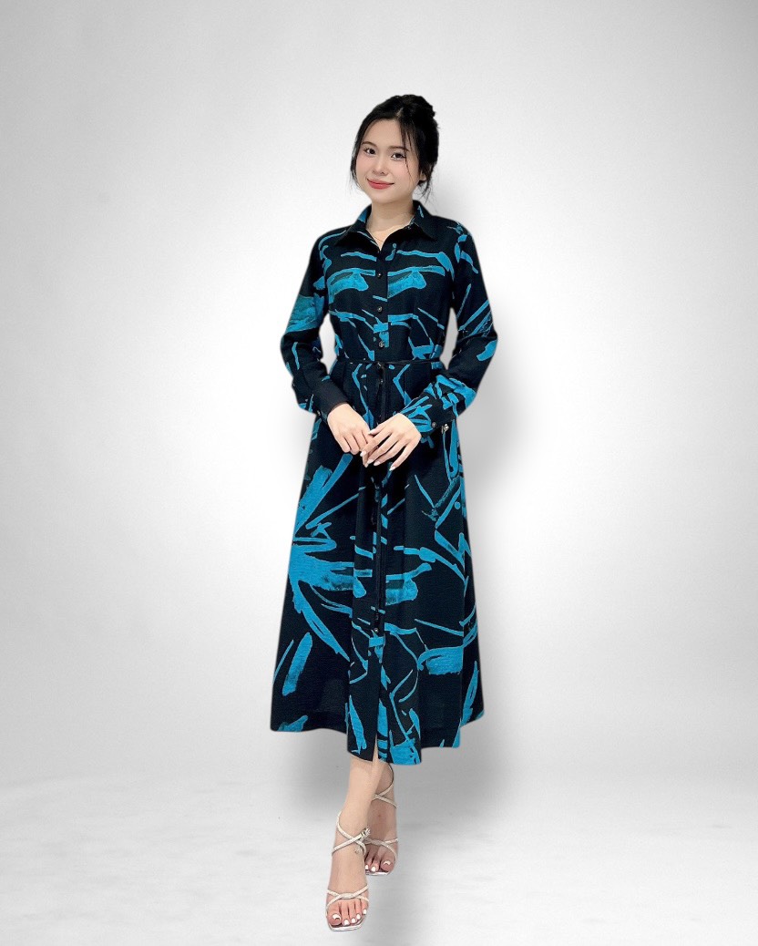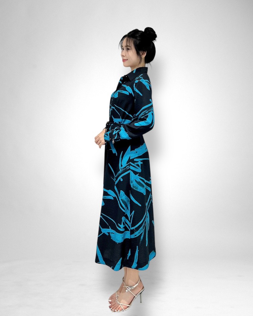 Thanh lịch, duyên dáng và không kém phần nổi bật — chiếc đầm maxi dáng A với thiết kế bâu sơ mi cổ điển, tay dài lịch sự, cài nút phía trước nhẹ nhàng giúp nàng dễ dàng điều chỉnh theo ý thích.