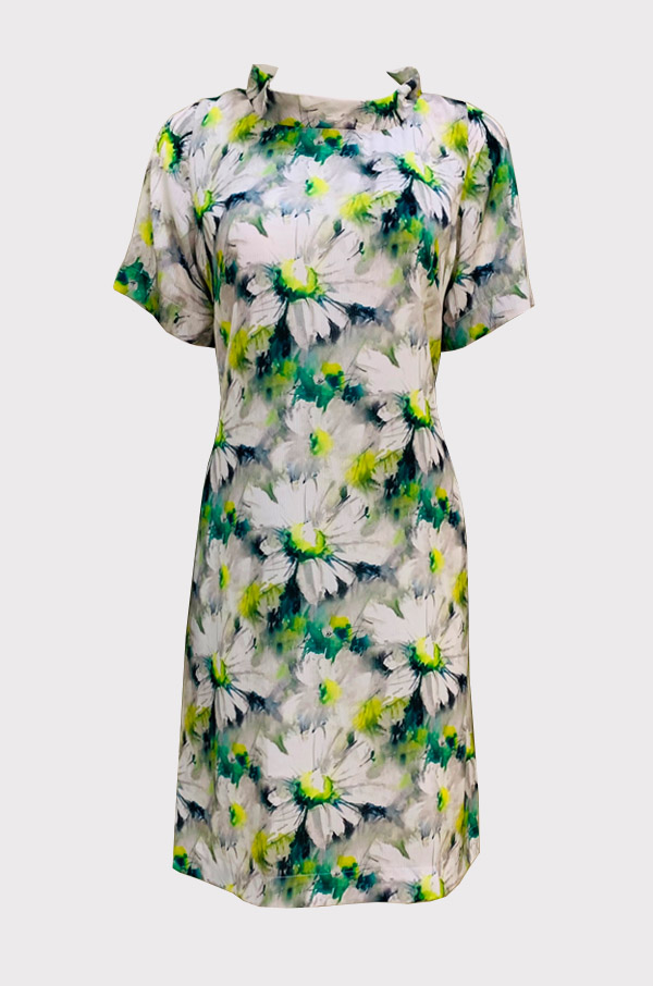 Chiếc đầm suông trên gối mang vẻ đẹp nhẹ nhàng và tinh tế, phù hợp với những cô nàng yêu phong cách thanh lịch nhưng vẫn muốn có điểm nhấn riêng. Thiết kế cổ thuyền duyên dáng, tạo cảm giác mềm mại, nữ tính, tay ngắn thích hợp cho nàng thích kín đáo, che bắp tay.