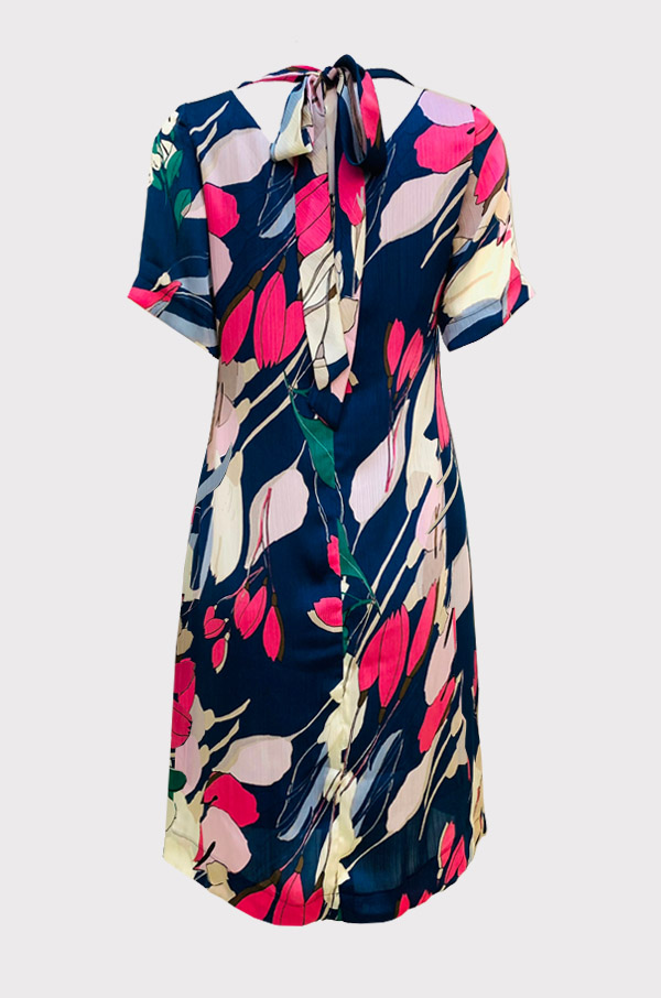 Điểm đặc biệt nằm ở chi tiết cột nơ cách điệu, khéo léo tạo nét nhấn nhá độc đáo mà không quá cầu kỳ, giúp tổng thể thêm phần cuốn hút. Đầm 2 lớp. Phom suông rộng rãi mang lại sự thoải mái, đồng thời che khuyết điểm hiệu quả.