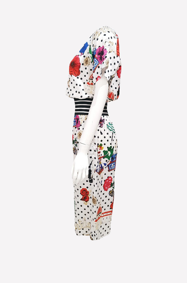 Tay ngắn vừa phải, tạo cảm giác thoải mái, thích hợp mặc vào mùa hè hoặc các buổi tiệc nhẹ. Chi tiết rã eo khéo léo giúp định hình vòng eo, đồng thời tạo hiệu ứng thon gọn, cân đối cho dáng người.